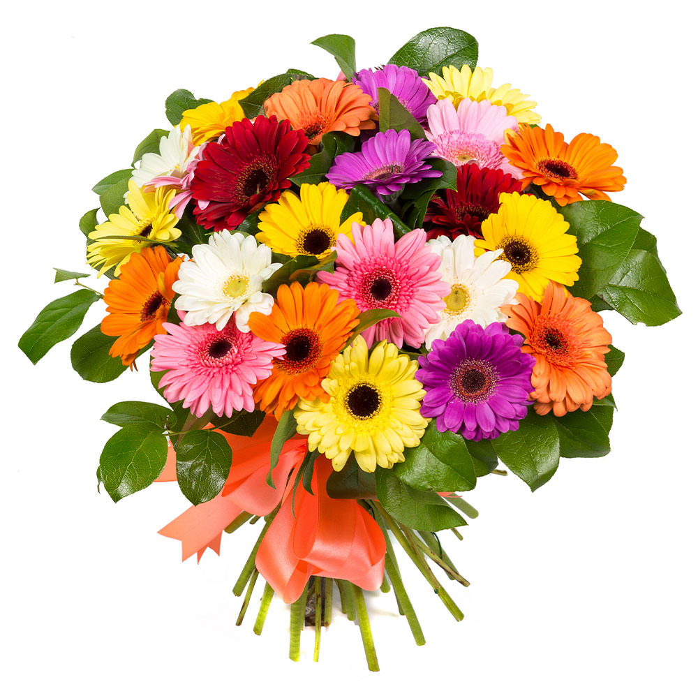 Герберы, микс, зелень.